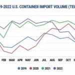 Reuters rapporterar att USA:s import av varor i sjöcontainers under december närmade sig de nivåer som sågs före covid-19-pandemin. Orsaken bedöms vara den rekordhöga inflationen och en minskad efterfrågan på olika konsumentvaror. En likartad utveckling har även skett i flödena från asien till europeiska hamnar sedan december förra året, vilket lett till fallande fraktpriser, men i nya störningar kan komma under 2023 enligt en ny rapport …