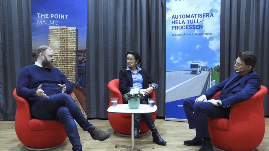 Den 9 november träffades Camilla Rolandsdotter-Blomqvist från Geberit, Jimmy Berglund från Descartes och SCEs Stefan Karlöf för ett filmat samtal om huruvida tullhanteringen kan vara mer än en kostnad och om nyttan av en automatiserad tull- och transportadministration.